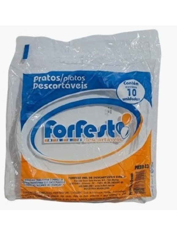 PRATO PLASTICO RASO 23CM C/10PCS BRANCO UN. FORFEST