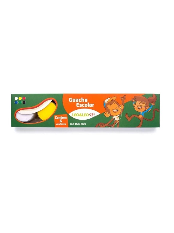 TINTA GUACHE ESCOLAR CAIXA C/6 CORES 15ML UN.
