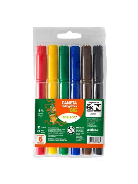 CANETA HIDROCOR PACOTE C/12PCS BIG C/6 CORES UN.