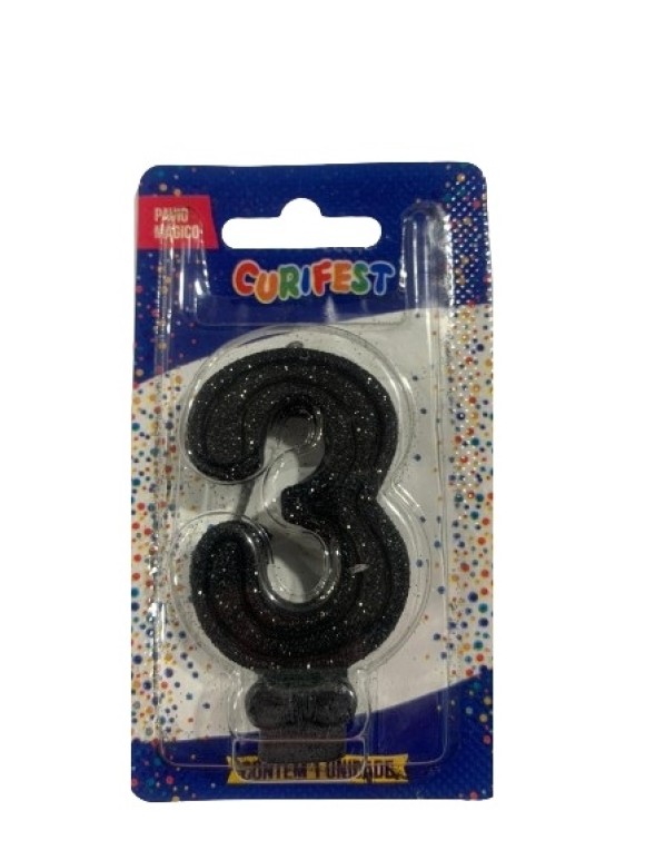 VELA SUPER NUMERO SIMPLES PRETO N 3 - (1733) UN. CURIFEST