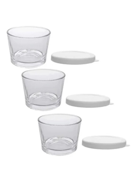 POTE DE VIDRO 220ML KIT C/ TAMPA 3 PEÇAS UN. INGA
