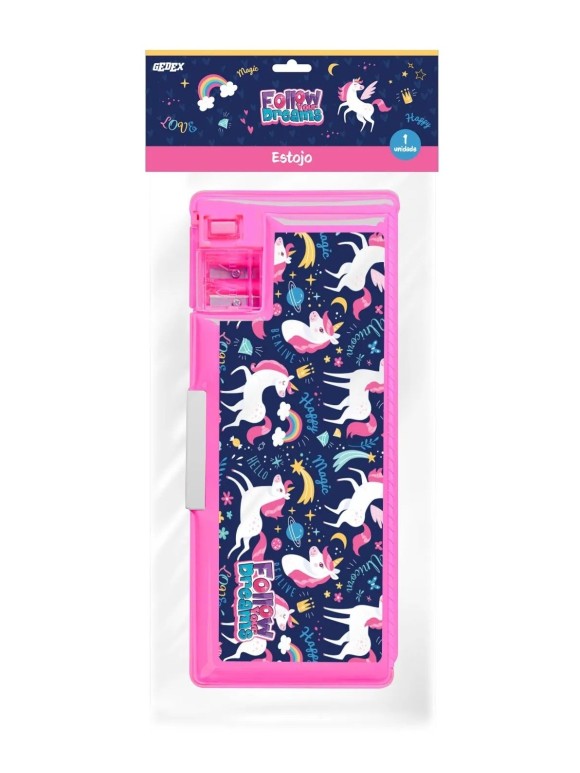 ESTOJO ESCOLAR MULTIFUNCIONAL COM APONTADOR UNICORNIO UN.