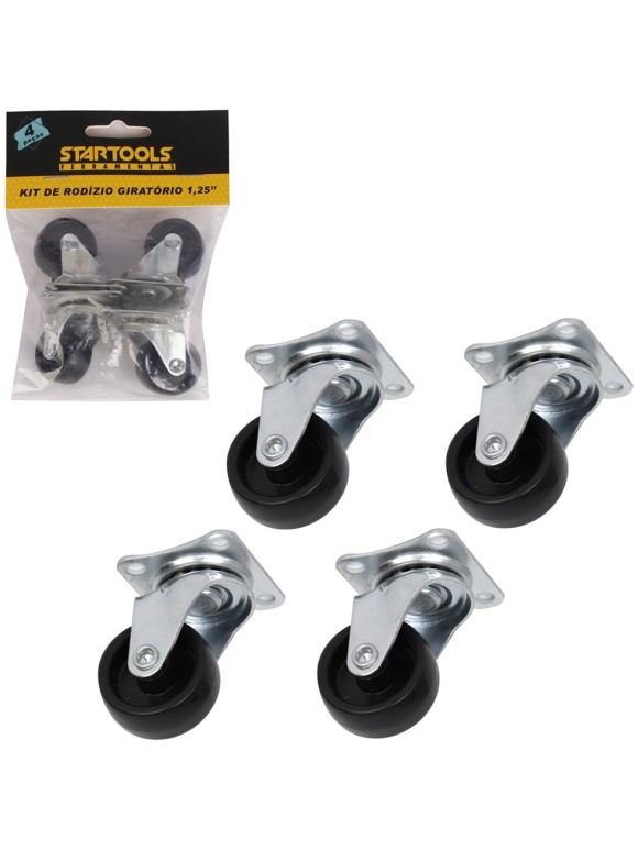 RODIZIO GIRATORIO KIT PRETO 1,25 C/4PCS UN.