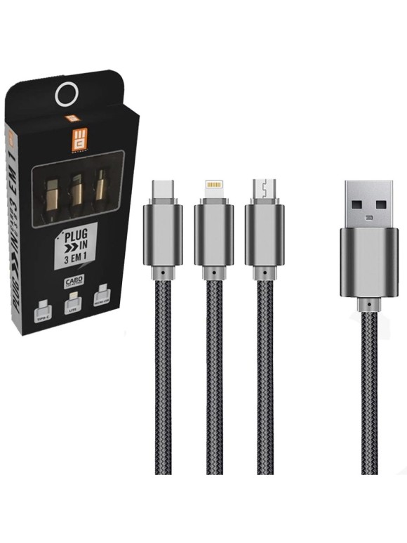 CABO 3 EM 1 USB X V8/IP7/TIPO-C 1,2M UN.