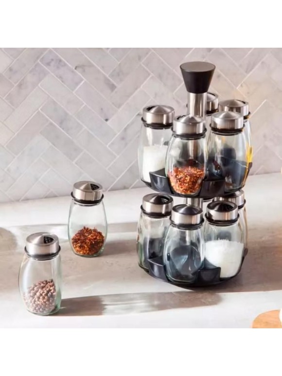 Esse porta condimento foi projetado para unir praticidade e sofisticação. Ele conta com 12 potes transparentes, ideais para armazenar condimentos, especiarias e temperos variados, como sal, pimenta, orégano, cominho, curry, páprica, entre outros. Os potes são resistentes e fáceis de limpar, mantendo os temperos sempre frescos e organizados.