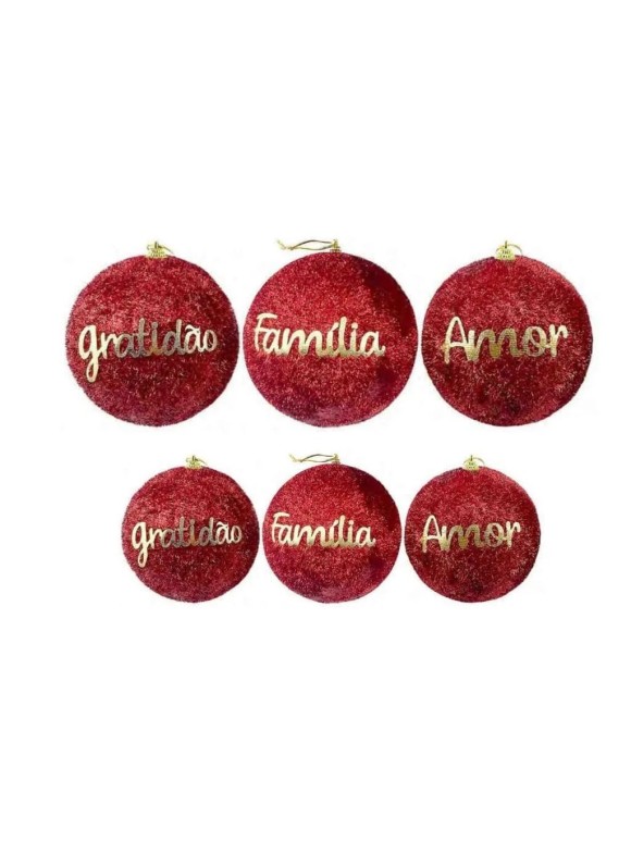 Bola de Natal com Glitter e Palavras 20cm Decorativa para Árvore, Guirlanda e Arranjos