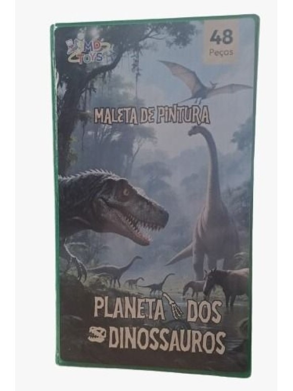 Maleta Colorida Infantil de Pintura 48 Peças Planeta dos Dinossauros — Kit Completo com Lápis de Cor, Canetinhas, Giz de Cera e Acessórios