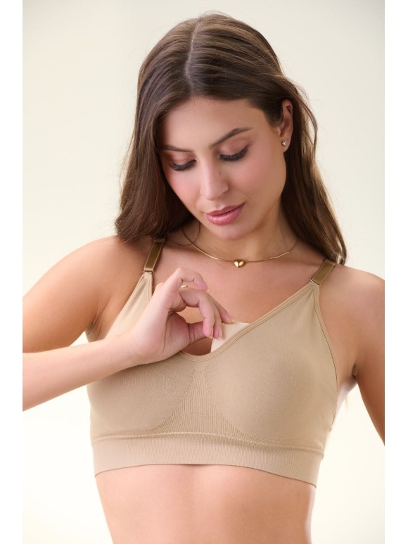 Sutiã Bege Adulto M Sem Costura com Bojo Estruturado e Alças Removíveis, Confortável, Versátil e Ideal para Uso Diário