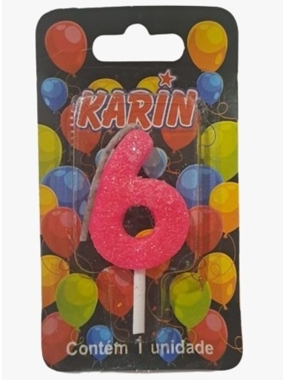 VELA DE ANIVERSARIO N.6 ROSA C/ GLITTER UN. KARIN